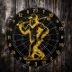 1. Introducing the ultimate conversation starter for your man cave or tourist attraction sales outlet: a striking dart board featuring a captivating gold and black image of Bigfoot. This unique design showcases the legendary creature, often referred to as Yeti or Sasquatch, in a playful yet sophisticated manner. The artwork depicts Bigfoot confidently striding with a golf club slung over his shoulder, perfectly blending the worlds of outdoor adventure and leisure sports. The rich gold accents against the deep black background create a visually stunning contrast that is sure to catch the eye of any visitor, making it an ideal centerpiece for game rooms or themed retail spaces.