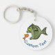 Angry fish bullying a little one cartoon illustration. Custom background color. Custom text on both sides.