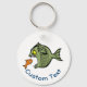Angry fish bullying a little one cartoon illustration. Custom background color. Custom text on both sides.