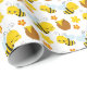 This cute wrapping paper is versatile and can be used for giving gifts or art and craft projects. The design features cute bumble bees, pots of honey and flowers on a white background.