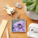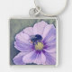 A beautiful key chain featuring a pastel - style art image of a bumble bee on a a cosmos flower. A lovely gift or stocking filler.