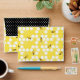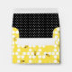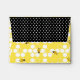 Sweet bumble bees buzzing over honeycomb pattern with black and white polka dot contrast.