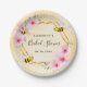 Bumble bee honeycomb pink florals bridal shower paper plates
