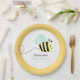 Bumble Bee Plate. Features a cute bee with mint green wings and honeycomb background. Perfect for a boy/girl/gender unknown baby shower or birthday.