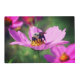 Busy little bumble bee busily working on a delicate pink cosmos flower close up. Flower photography by Susan.