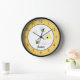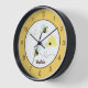This clock features a vibrant yellow background that will brighten up any room. The two adorable bumble bees have mint green wings that add a pop of color and bring a touch of whimsy to the clock.