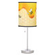 The lamp looks exactly like the picture, bright and colorful. The lamp shade is plastic not what I expected, however I love it! The printing is clear and the name can easily be read.