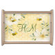 Yellow, white background with a honeycomb pattern. Decorated with cream colored tropical florals flowers, hibiscus and happy bumble bees. Ttemplate for your monogram, your names first letters. Perfect for your summer home and outdoor alfresco dining in your garden, backyard.