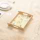 This is a well made, sturdy wooden tray with a flawless black finish and lovely map on the tray surface. It is both vintage & modern at the same time. Looks exactly like the photo; does not disappoint. So nice to find something of quality individually made and not the mass-produced 'shabby chic' merchandise seen in stores. I am so pleased to be able to give this to my college-age niece for her birthday. This can be used as a tray to hold jewelry or toiletries, or hung on the wall as art. The map surface is sealed (it is slightly shiny) so would be moisture resistant. It is well worth the asking price but I was able to apply a sale code as well. Very happy with my purchase. Map is crisp & clear and sealed with a water-resitant finish.