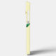 A cute bumblebee gently sits among two delicate lavender flowers and fresh green leaves, all set against a soft creamy yellow backdrop with yellow honeycomb design