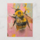 A bumblebee on a pink and yellow peeling paint background AI generated art