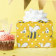 Cute bumblebee graphic on yellow and white polka dot pattern.