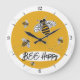 Bumblebees Bee Happy Modern Yellow Black White Large Clock