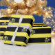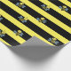 Bumblebees on Black Yellow Striped Wrapping Paper