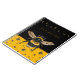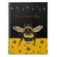 Gardening notebook to personalize with a title. Black and golden yellow, with bumblebees design. A single large bee is featured. A row of bumblebees across the top, with more bees making a patter over the yellow at the bottom of the cover.