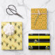 Bumblebees with heart & honeycomb pattern wrapping paper sheets