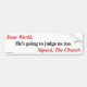 Bumper Sticker: "Dear World, He's going to judge us too. Signed, The Church"