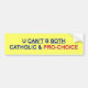 Bumper Sticker. U Can't B Both Catholic & Pro-Choice. Background can be changed to any color!