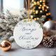 This cute "Bump's First Christmas" ornament is an adorable way to celebrate your coming baby. Features watercolor floral with blueberries and modern calligraphy. Easily personalize with the year. Design is the same on front and back of ornament. Makes a great Christmas present for expecting parents!