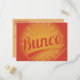 Bunco Invitation Postcard includes a orange hued vintage and retro style design featuring swash and burst elements. Fun way to invite your neighborhood friends to come play the dice game Bunco at your house.