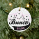 Lightweight, smooth, pure white ornament with nice sheen. Perfect size to be seen from across the room ... and to attract closer inspection! Price was great for ordering enough for the whole family! Clear, bold black design just as requested. Matches the order exactly. Just so nice!
