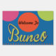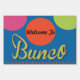 Fun Bunco Sign To Welcome Your Guests!. Features a blue background with pink, green and orange dots inspired by dots on the Bunco dice. Customize your own text!
