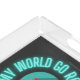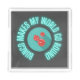 Those that love the game of Bunco will love this retro inspired design with red dice on a turquoise center, neon aqua "Bunco makes my world go round" text on dark chalkboard gray background.