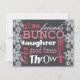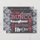 Invite your family and friends to a fun filled Bunco Night. Graphic design features subway art with words associated with Bunco: dice, friends, laughter, chat. good times, throw and roll. Background color can be changed. Font on text side can be changed. Keep on playing Bunco!