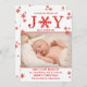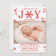 Simple yet striking, these "Joy" white and red snowflake photo Christmas birth announcement cards will be perfect to send out to your family and friends this holiday season. The design is easy to personalize to make them unique to you and your new bundle of joy.