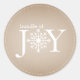 A baby shower sticker featuring an illustration of a snowflake incorporated intro phrase "Bundle of Joy." Background is cardstock inspired.