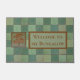 Doormat for Craftsman Bungalow . This doormat looks like Craftsman tiles ( the kind on fireplaces). It features several shades of green squares. It has an image of an Oakl Tree tile. You can customize this with your own clever or serious message. This comes from Oregon Tile maker Fay Jones Day.