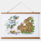 Bunnies and Bird Enjoy Snow Hanging Tapestry