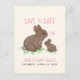 Ask your guests to save the special date of your shower with these adorable, hand-painted mama and baby cottontail bunny rabbits sitting in a patch of clover while emitting floating pink hearts between them! The words "Save the Date" and "Baby Shower" and the name of the mother-to-be are in pink text. On the back of the post card are return address and message templates. Shown here with an ivory colored background which you can easily change to your favorite color. If you need help or matching items, please contact me.