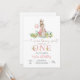 Celebrate your little ones special milestone with this whimsical bunny first birthday invitation. Featuring a sweet watercolor bunny in a pink jacket and floral crown holding a balloon, this pastel design is perfect for a girls birthday party. The charming woodland theme adds a magical touch, making it ideal for spring or summer celebrations. Personalize with your party details to create a keepsake guests will adore.
