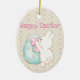 Bunny and Easter Egg Ceramic Ornament. "Happy Easter" (personalize this greeting).