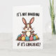 This card features a cute bunny 🐰 with soft brown fur, a cream muzzle, rosy cheeks, and bright round eyes, smiling as if it’s sharing a sweet secret with you. The bunny sits cozily among a pile of egg-shaped chocolates, arranged close like a little stash meant for friends to giggle over together. The chocolates mix soft pink, gentle blue, sunny yellow, and deep brown, with polka dots and tiny speckles that add extra charm. Small green leaves peek out between the treats, bringing in a spring garden touch 🌷 and a light, friendly mood. Across the top, the phrase “IT’S NOT HOARDING” appears in dark, hand-drawn uppercase letters, centered above the bunny’s ears. Along the bottom, “IF IT’S CHOCOLATE!” is centered in matching lettering, balancing the design and framing the scene. The background stays plain white so the bunny and candy colors stand out clearly, and each egg has its own little pattern and shading detail. A few chocolates near the bunny’s paws show dotted designs, while others have scattered speckles and tiny highlights that make them look glossy.