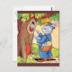 Vintage illustration of a bunny mailman delivering mail to a lady bunny in a tree house. Colorful and fun.