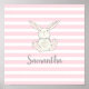 Cute nursery wall decor customizable poster, bunny on pink and white lines ti help planning for the new arrival.