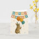 Send the sweetest birthday wishes with this charming bunny card! Featuring an adorable rabbit in a striped party hat, holding colorful balloons beneath a festive “Happy Birthday” banner. A perfect choice for animal lovers, kids, or anyone who enjoys whimsical and heartwarming designs. Printed on premium cardstock and blank inside.