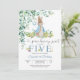 Celebrate your childs special day with this adorable bunny birthday party invitation featuring a whimsical watercolor rabbit holding a balloon. Perfect for kids turning five, this charming design includes playful greenery and vegetables for a sweet, storybook feel. Customize with your party details to create a memorable keepsake that guests will love. Ideal for childrens birthdays, spring parties, and animal-themed celebrations, this invitation blends cute illustration with practical event details for a delightful touch.