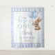 This charming 1st birthday backdrop features a cute bunny holding balloons and a blue gingham background. Designed by Thisisnotme©
