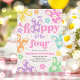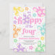 Bunny Daisy Floral Pastel Spring 4th Birthday Invitation