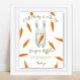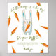 Gender neutral baby shower invitations. Featuring the saying 'A LITTLE BUNNY IS ON THE WAY!', an illustration of a watercolor bunny (rabbit) with carrot in paws, and many orange color carrots. Matching items available.