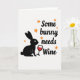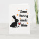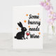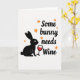 Designed with a simple, romantic scene, this card features a small long-eared bunny silhouette resting at the lower left, as if pausing to watch someone nearby 🐰. Just to the right, a slender stemmed glass holds a heart-shaped pool of deep red liquid, adding a flirty touch against the mostly dark-and-cream palette. The bunny’s quiet posture and the nearby glass together suggest a cozy moment shared between close friends or sweethearts. Across the upper and mid-right area, flowing lettering stretches diagonally, giving the layout an airy sense of movement. The text appears in a dark, inky tone, standing out clearly from the soft creamy background. Between the words, small five-point star shapes in bright orange are sprinkled like little sparks, adding warmth and a hint of celebration 🌷. The background stays smooth and lightly tinted, letting the sharp silhouette, red heart shape, and orange stars remain the strongest visual accents. The orange stars cluster most around the right side of the lettering, while the bunny and glass anchor the lower-left corner.