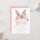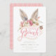 This fun Easter Brunch invitation features watercolored bunny ears over the words "Easter Brunch." All the invitation details are directly below on a bright white background. The back side is a coordinating pink gingham pattern.
