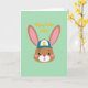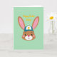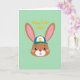 This design shows a stylized rabbit head centered on a pale mint-green background, drawn with simple lines and soft shapes that feel sweet and friendly 🐰. Long light-brown ears with pink inner details frame a rounded face, and the tiny black dot eyes and gentle brows give it an attentive, affectionate look, like it’s leaning in to greet someone close. Rosy pink cheek circles add a bashful touch, and a small heart-shaped nose in bright pink sits above a curved smile with a little tongue showing. A sporty cap tilts on its head, with a deep teal brim, a white top, and a sunny yellow letter “E” on the front, topped by a small pink button that matches the nose. Near the top of the card, the phrase “Happy Easter Baby!” is written in yellow, in a loose hand-drawn style that arches above the character 🌷. The roomy background keeps the focus on the rabbit’s tender expression and the warm, flirty greeting overhead. The mint field stays flat and uncluttered, with no extra scenery beyond the rabbit’s face, ears, and cap.