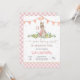 Celebrate your little ones milestone with this adorable bunny first birthday invitation. Featuring a sweet watercolor bunny holding a pink balloon, floral accents, and charming bunting, this design sets the perfect tone for a whimsical celebration. The soft pink polka dot background and gingham border add a playful touch, making it ideal for baby girl parties. Personalize with your childs details to create a keepsake guests will love.