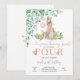 Celebrate your little ones special day with this whimsical bunny floral birthday invitation. Featuring a sweet watercolor bunny in a pink cape and floral crown surrounded by lush greenery, this charming design is perfect for a girls 4th birthday party. The playful woodland theme adds a magical touch, making it ideal for fairy garden or spring celebrations. Personalize with your party details to create a keepsake guests will adore.