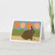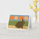 This cute bunny is guilty of eating the garden plants. Brown bunny in front of the green hedge with tulips and sky in the background. The image looks like hand-painted paper. Use for Spring Equinox, March equinox, the first day of spring, Easter, Vernal Equinox, and mother earth. Brown, peach, green, brown, and pink. Inside: Happy Spring