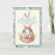 This adorable Easter card features a cute little bunny rabbit peeking, or maybe hatching, out of a cracked Easter egg with the words "Happy Easter" overhead in a vintage pink and blue script adorned with bunny ears. Personalize by customizing the message on the inside and/or adding your name(s) - or leaving that part blank if you wish to add your own handwritten signatures later.